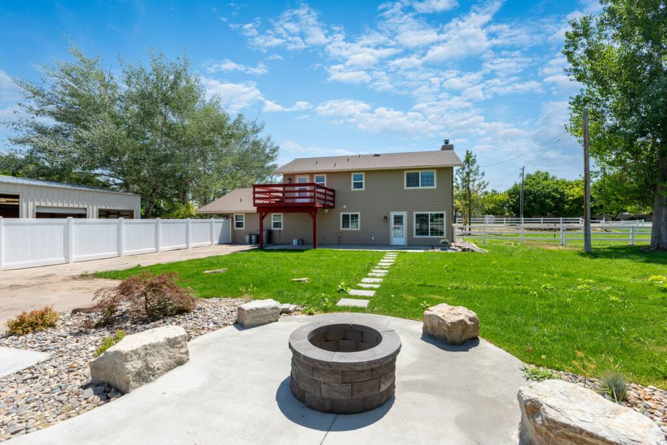 Step outside onto the expansive outdoor area and discover a true oasis. The acre of land surrounding the property provides plenty of space for outdoor activities and relaxation. Gather around the fire pit and share stories and laughter while roasting marshmallows under the starry Idaho sky. Alternatively, savor a morning cup of coffee on the balcony, overlooking the serene surroundings and planning your day's adventures.